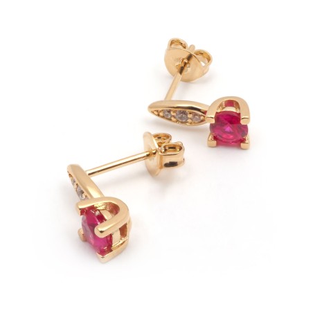 Boucles d'oreilles fantaisie femme carador en plaqué or avec spinelles blanche et rouge