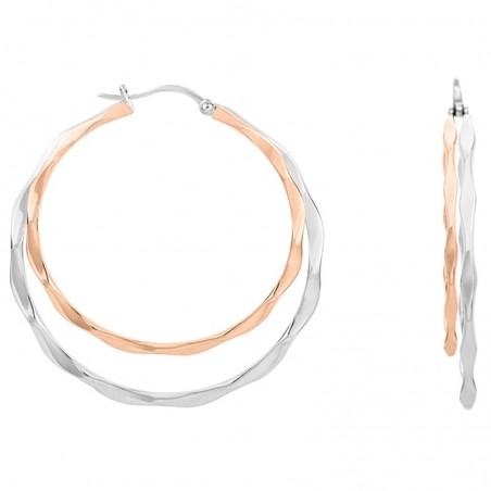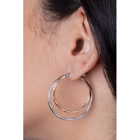 Ces boucles d'oreilles double créoles sont en acier bicolore.