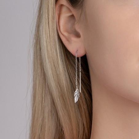 Boucles d'oreilles Femme - Carador - Argent Rhodié, motif plume