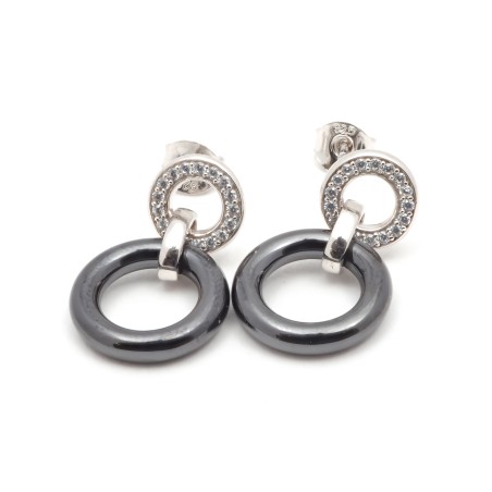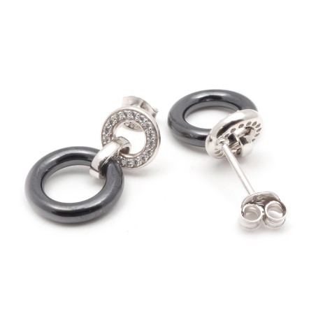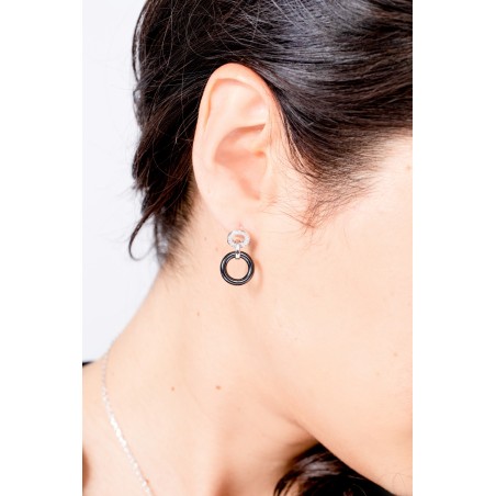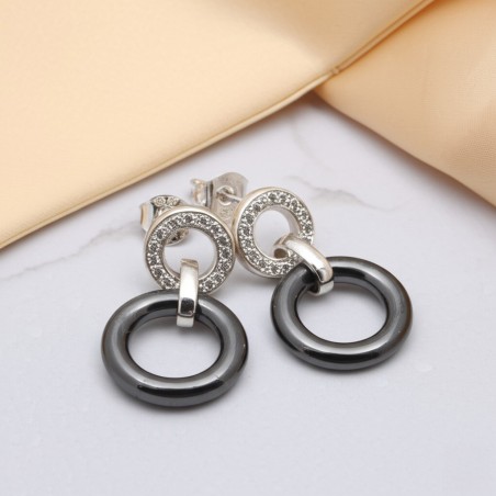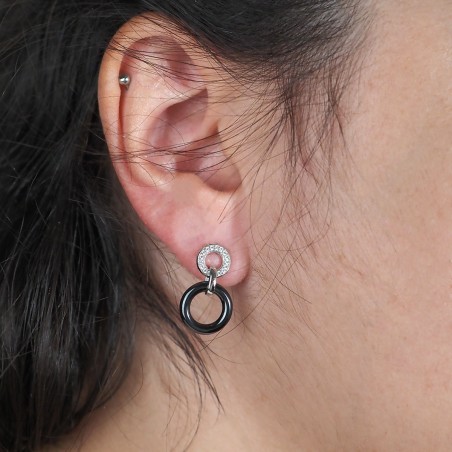 Boucles d'oreilles femme Carador doubles anneaux pendantes en argent et céramique noire avec oxydes de zirconium
