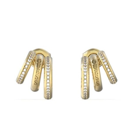 Boucles d'oreilles Femme Guess trois rangs en acier doré avec oxydes de zirconium