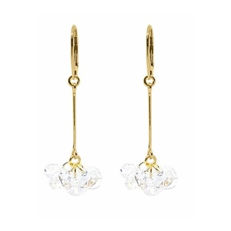 Boucles d'oreilles Femme Indicolite Pendantes Plaqué or et Cristaux fleur blanc