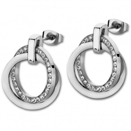 Boucles d'oreilles femme lotus style en acier argentée et oxydes de zirconium
