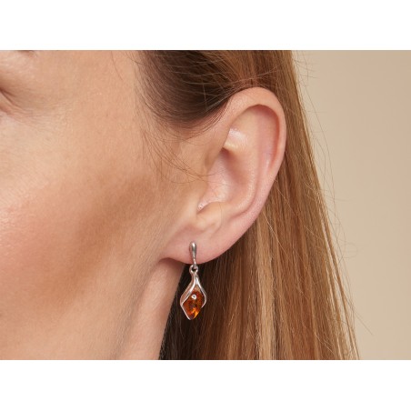 Boucles d'oreilles Femme Pendantes en argent 925/000 avec Ambre marron