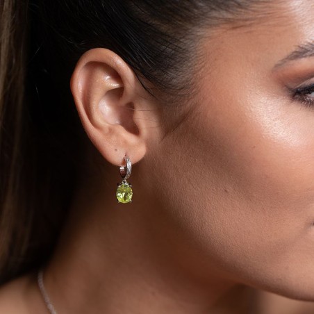 BOUCLES D'OREILLES FEMME PENDANTES GRIFFE ROUGE ELISABETH ARGENT 925/1000 ET OXYDE VERT