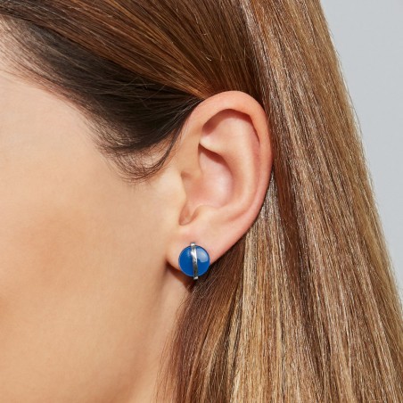 Elles se composent d'acier inoxydable de couleur argent et sont ornées de pastille de verre de couleur bleue.