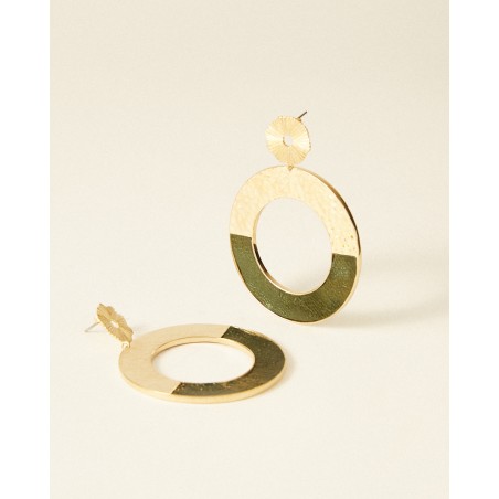 Boucles d'oreilles Flowers for Zoé Illusion en argent doré et cuir Olive