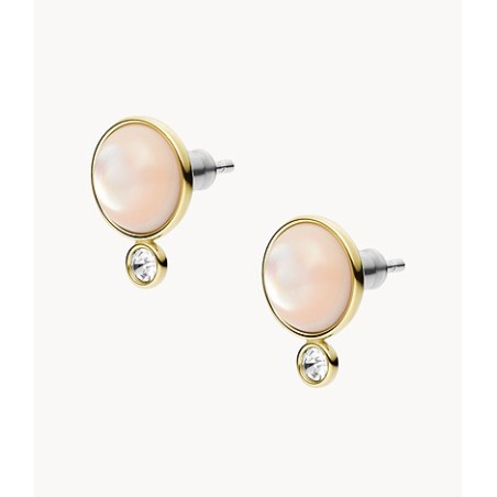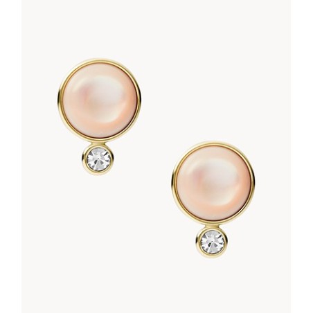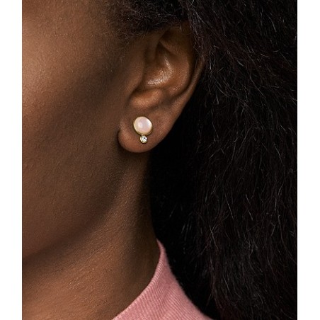 Boucles d'oreilles Fossil en forme de clous en acier doré et nacre rose.