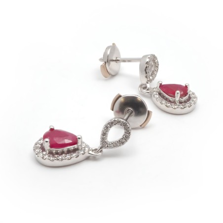 Boucles d'oreilles Joaillerie goutte Carador en or blanc 750/000, rubis et diamants