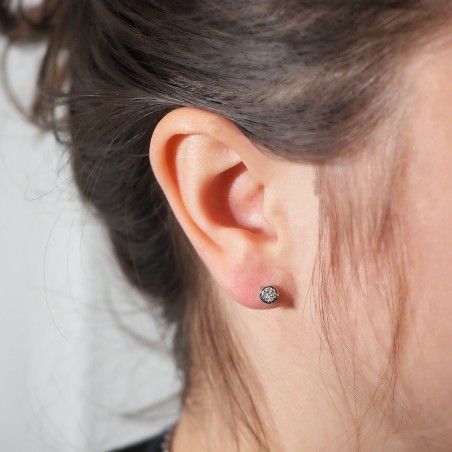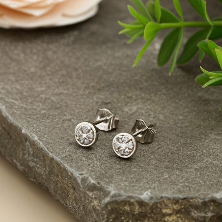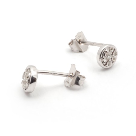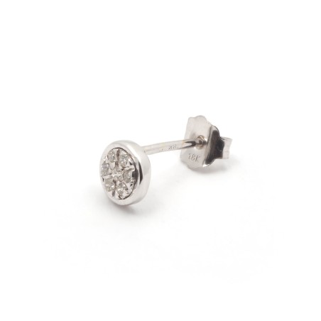 Ce modèle de type clous de 0.5mm est en or blanc 750/000, sa forme ronde est sertie de diamants lui donnant ainsi un sublime éclat.