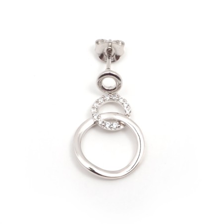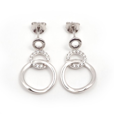 Ces boucles d'oreilles pendantes sont en argent 925/000, ainsi que de deux cercles qui s'entremêlent dont un ornée d'oxyde de zirconium incolore.
