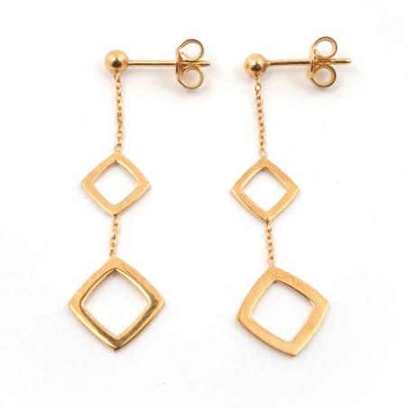 Boucles d'oreilles pendantes Carador Géométrie double carrés or 375/000
