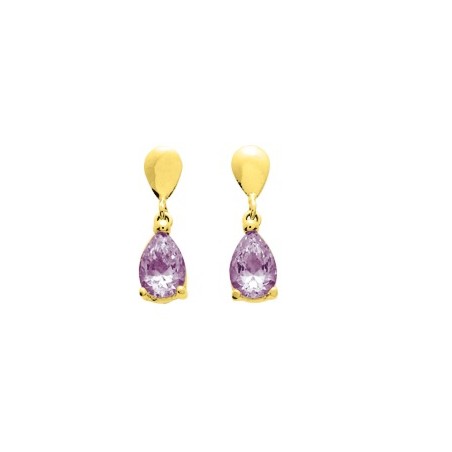 Boucles d'oreilles pendantes en or 375/000 et améthyste
