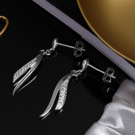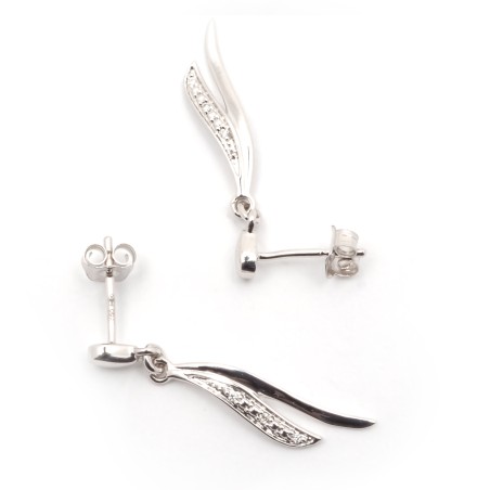 Votre bijouterie CARADOR vous propose cette paire de boucles d'oreilles pendantes en or blanc 750/000. D'une longueur de 2.5 cm ce bijou est orné de 4 diamants lui donnant un éclat sublime.