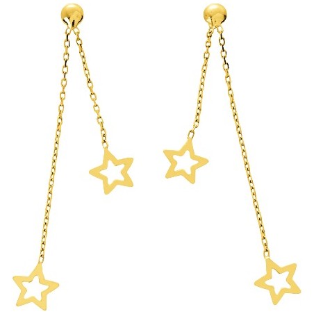 Boucles d'oreilles pendantes étoiles or jaune 750/000