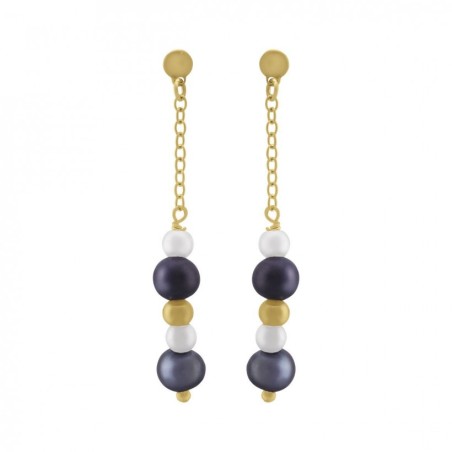 Boucles d'Oreilles Pendantes Femme Jourdan Or 375/000 Perles noires et blanches