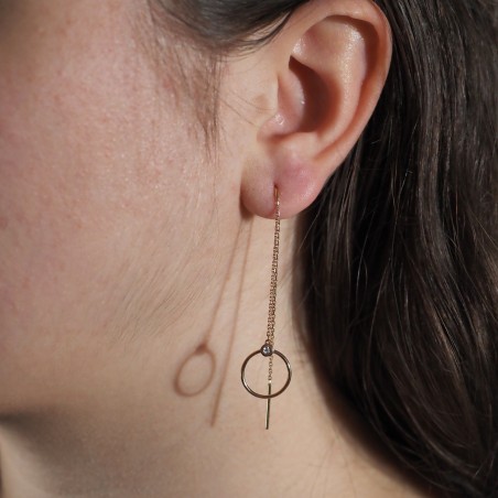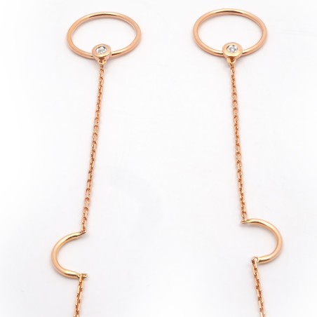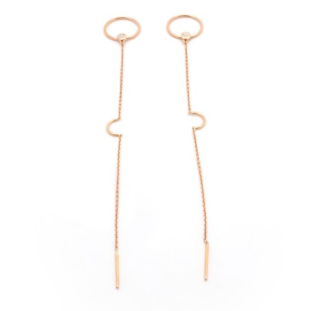La bijouterie CARADOR vous propose des boucles d'oreilles pendantes de couleur doré rose. Ce bijou agrémenté d'un diamant lui donne son éclat. Dimension totale du bijou : 10.5 cm. Dimension du bijou porté : 5 cm Ce bijou intemporel n'attend plus que vous.