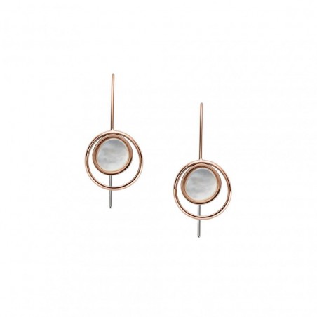 Il se compose de plusieurs cercles entremêlés de couleur dorée rose dont un orné d'une pierre de nacre de couleur blanche.