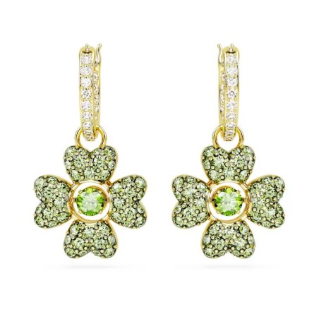 Boucles d'oreilles pendantes Swarovski Collection Idyllia en acier doré et cristal vert motif tréfle