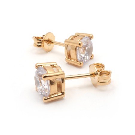 Boucles d'oreilles plaqué or et oxydes de zirconium 6MM sertis 4 griffes carador
