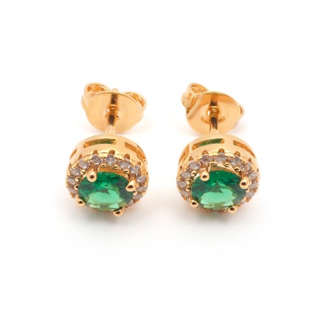 Boucles d'oreilles puces femme carador en plaqué or avec oxydes de zirconium blanc et vert