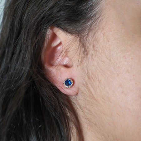 Boucles d'oreilles puces femme carador en plaqué or avec oxydes de zirconium blanc et bleu