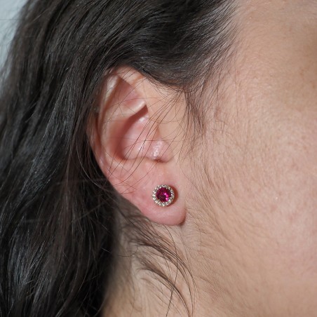 Boucles d'oreilles puces femme carador en plaqué or avec oxydes de zirconium blanc et rouge