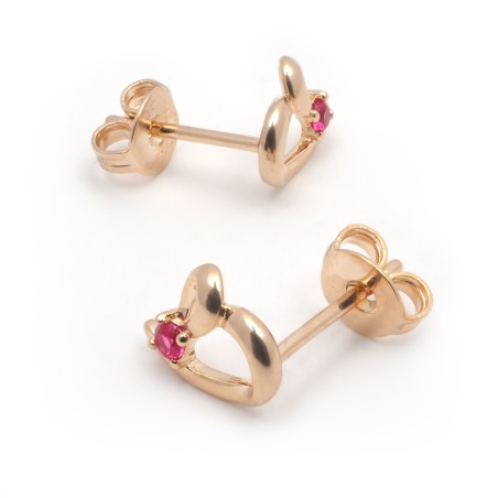 Boucles d'oreilles puces motif cœur femme carador en plaqué or avec spinelle rouge