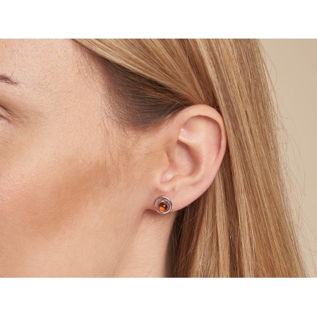 Ces boucles d’oreilles en argent 925/000 sont de forme ronde au centre desquelles se trouve une pierre d’ambre.