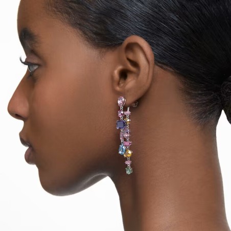 Boucles d'oreilles Swarovski argentées et cristaux multicolores