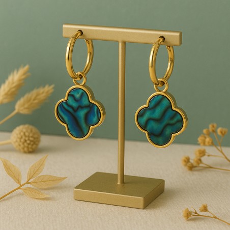 Boucles d'oreilles Trèfles Amporelle - Acier doré Pierres Synthétiques