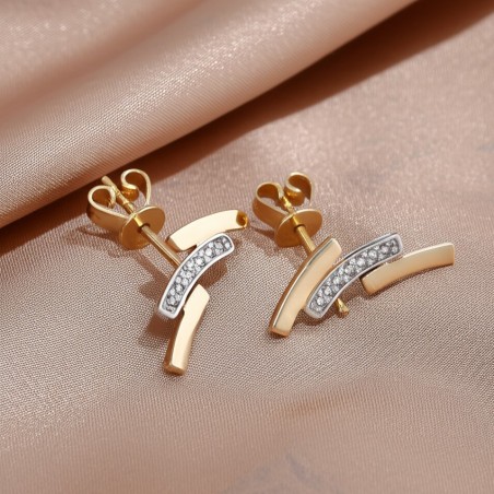 boucles d'oreilles trois barrettes bicolore Carador en or 750/000 et diamants