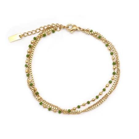 Bracelet Amporelle Acier doré - 3 rangs éléments verts