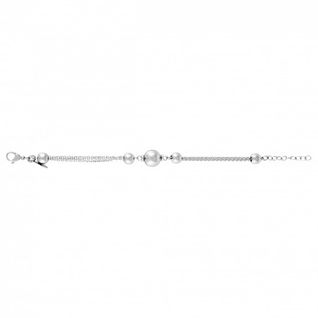 Découvrez le bracelet Amporelle en acier, une exclusivité de votre bijouterie Carador. Ce bijou pour femmes séduit par son style tendance et fantaisie. Il se distingue par son design en acier argenté, orné de boules de différentes tailles qui ajoutent une touche unique à ce bracelet. La matière argentée met en valeur le raffinement de ce bijou, offrant une brillance discrète mais remarquable.