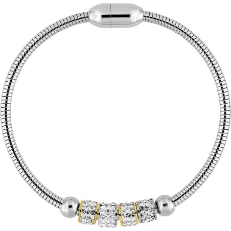 Bracelet Amporelle maille serpent en acier argenté avec 4 breloques recouverts d'oxydes de zirconiums