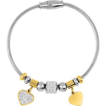 Bracelet Amporelle maille serpent en acier argenté avec breloques dorées motif cœur