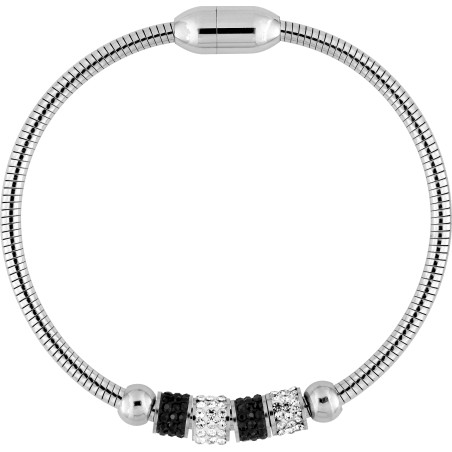Bracelet Amporelle maille serpent en acier argenté avec breloques recouvertes d'oxydes de zirconiums noirs