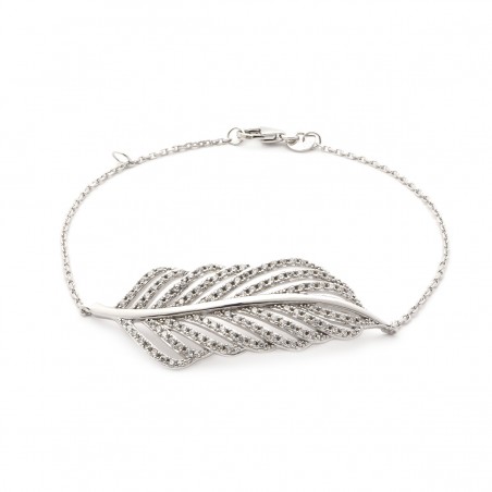 Sa matière en argent 925/000 lui confère une brillance exceptionnelle. La plume, symbole de légèreté et de liberté, est mise en valeur par un oxyde de zirconium qui capture la lumière et fait scintiller le bracelet. Sa couleur argentée se marie à toutes les tenues et apporte une touche de sophistication.