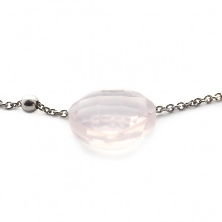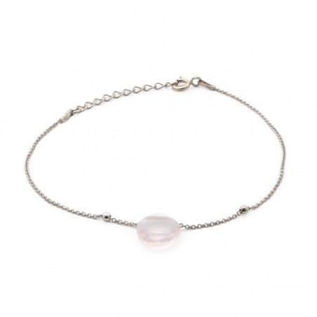 Bracelet argent 925/000 rhodié avec motif forme coussin en quartz rose