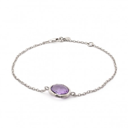 Bracelet argent 925/000 rhodié avec motif rond d'améthyste