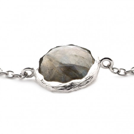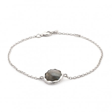 Bracelet argent 925/000 rhodié avec motif rond de labradorite