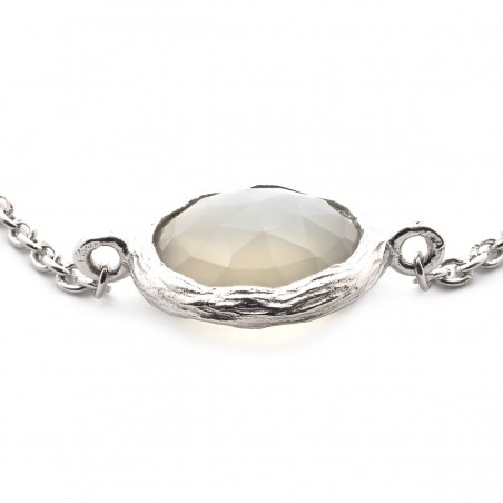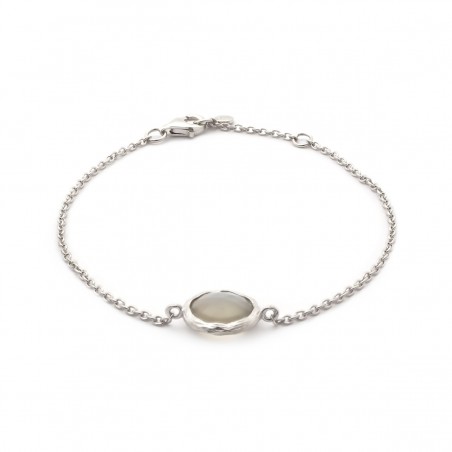 Bracelet argent 925/000 rhodié avec motif rond de pierre de lune