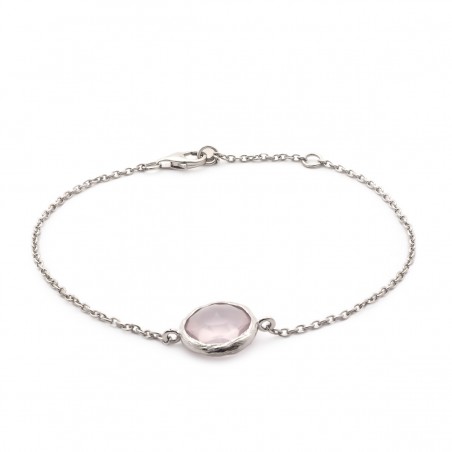 Bracelet argent 925/000 rhodié avec motif rond de quartz rose