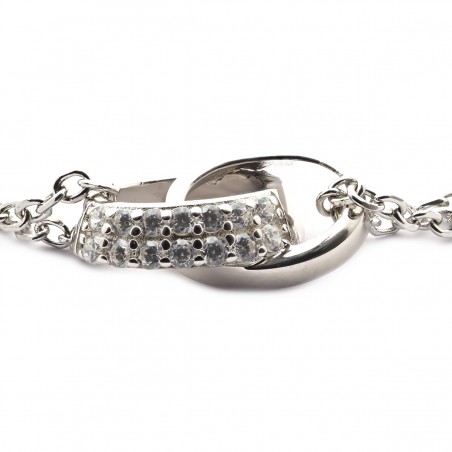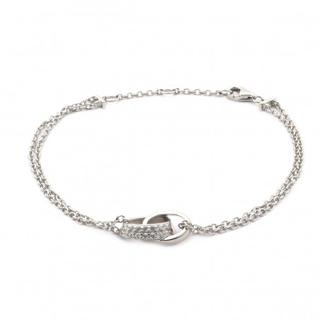 Sublimez votre poignet avec ce bracelet pour femme signé Carador. Fabriqué en argent 925/000 rhodié, il se distingue par ses deux chaînes en maille forçat délicatement entrelacées. Ce bijou mesure 19 cm de longueur, une taille idéale pour se poser avec élégance sur votre poignet. La brillance des oxydes de zirconium blancs qui ornent les anneaux entrelacés apporte une touche d'éclat à ce bracelet. Son fermoir mousqueton et ses deux anneaux intermédiaires assurent un ajustement parfait. Le style tendance de ce bracelet en argent s'accorde à merveille avec une tenue chic et moderne. La couleur argentée du bijou apporte une note de raffinement supplémentaire. Ainsi, ce bracelet est un choix parfait pour celles qui aiment les bijoux à la fois sophistiqués et dans l'air du temps. Enfin, son design fantaisie met en valeur la beauté naturelle de l'argent et des oxydes de zirconium. Choisissez ce bracelet Carador pour apporter une touche d'éclat à votre quotidien.