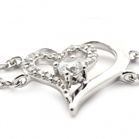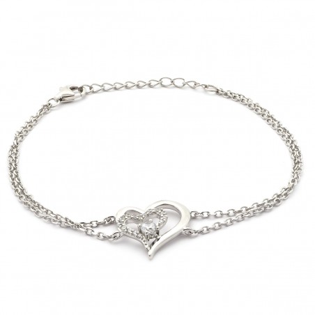 Adoptez une touche tendance avec ce bracelet en argent 925/000 rhodié pour femme de la bijouterie Carador. Son allure chic et classe est mise en avant par deux chaînes en maille forçat de 19 cm de longueur. Les cœurs entrelacés, ornés de cristaux d’oxyde de zirconium, offrent un éclat brillant qui rehaussera votre élégance. Ce bijou fantaisie est doté d'un fermoir de type mousqueton et de deux anneaux intermédiaires, permettant une adaptation parfaite à votre poignet. Le motif cœur et la couleur argentée de ce bracelet font écho à l'amour et à la pureté. Portez-le et laissez le reflet des pierres blanches illuminer votre allure. Ce bracelet Carador est un choix à la fois moderne et intemporel pour toutes celles qui aiment allier originalité et sophistication.
