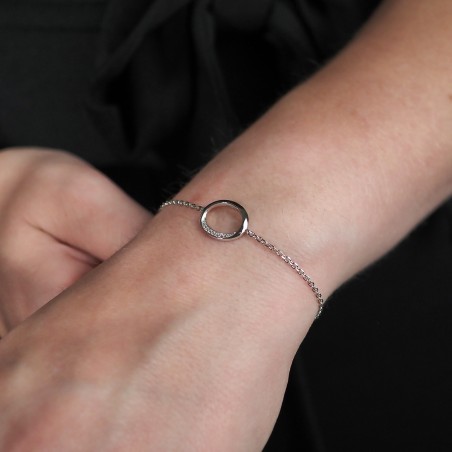 Adoptez l'élégance avec le bracelet argent pour femme de Carador. Ce bijou témoigne d'une sophistication délicate grâce à sa chaîne en argent 925/000 rhodié. Le style est rehaussé par une maille forçat, longue de 19 cm, ajoutant un attrait unique. La pièce maîtresse du bracelet est un motif circulaire, orné de cristaux d’oxydes de zirconium. Ces pierres apportent un éclat brillant, capturant la lumière pour illuminer votre poignet. Le bracelet est facile à porter grâce à un fermoir de type mousqueton et des anneaux de bout qui permettent un ajustement parfait à votre poignet. Sa couleur argentée lui confère un look intemporel, tandis que le blanc des pierres ajoute une touche de pureté. Son style tendance en fait un bracelet fantaisie idéal pour les femmes qui cherchent à ajouter une note de chic à leurs tenues. Ce bijou est non seulement une déclaration de mode, mais aussi une expression de la féminité moderne.