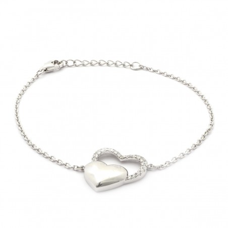 Découvrez le raffinement incarné dans ce bracelet pour femme signé Carador. Une chaîne en argent 925/000 rhodié, d'une longueur de 19 cm, constitue la base de ce bijou. Sa maille forçat offre une structure solide tout en conservant une élégance discrète. Le bracelet arbore un motif central de deux cœurs entrelacés, sublimé par des oxydes de zirconium. Ces cristaux blancs apportent un éclat lumineux, faisant de ce bracelet un accessoire incontournable pour réhausser votre allure. Le fermoir mousqueton assure une fixation sécurisée, tandis que les anneaux de bout permettent un ajustement parfait à votre poignet. Ce bracelet Carador, de couleur argentée, est un bijou au style tendance et à la forme fantaisie qui saura séduire les femmes modernes. Succombez au charme de ce bijou et laissez-vous séduire par son look chic et classe.
