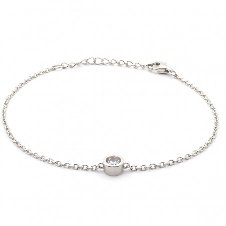 Au centre de ce bracelet, un cristal d’oxydes de zirconium apporte une touche d'éclat et de sophistication. Sa couleur blanche confère à ce bijou une allure intemporelle. Le fermoir de type mousqueton et les anneaux de bout garantissent une fixation sûre et aisée.