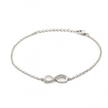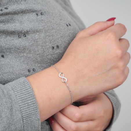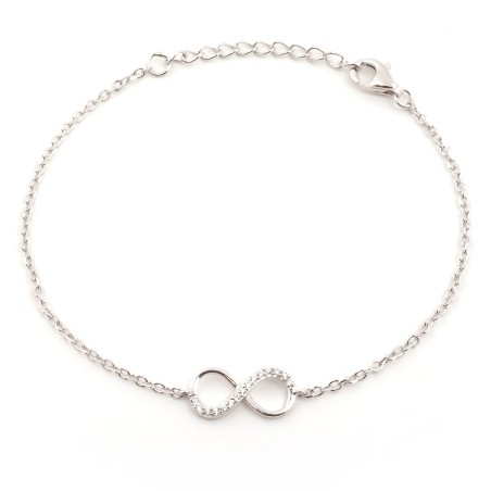Faites une entrée remarquée avec ce bracelet pour femme de Carador, une déclaration de style tendance et délicate à la fois. Réalisé en argent 925/000 rhodié, ce bijou se distingue par son motif infini, symbole intemporel de l'éternité et de l'amour sans fin. Il est sublimé par des oxydes de zirconium blancs qui ajoutent une touche d'éclat à votre tenue. Le bracelet mesure 19 cm de longueur et est doté d'une maille forçat, offrant une texture unique et une résistance accrue. Le fermoir mousqueton et les anneaux de bout assurent un ajustement parfait à votre poignet. Ce bracelet fantaisie argenté est un choix judicieux pour ajouter une touche d'élégance à votre look quotidien ou pour rehausser une tenue de soirée. Il est aussi un cadeau merveilleux pour exprimer un amour infini. Avec ce bracelet Carador, faites l'expérience de la beauté dans sa forme la plus pure et la plus élégante.