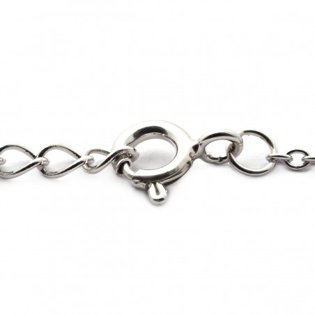 Le bracelet est composé d'une chaîne en maille forçat, d'une longueur de 19 cm. Cette chaîne, d'une couleur argentée, est faite d'argent 925/000 rhodié, un matériau reconnu pour sa résistance et sa durabilité. Le bracelet est sécurisé par un fermoir de type mousqueton, facile à manipuler, et comprend également des anneaux de bout pour un ajustement parfait.